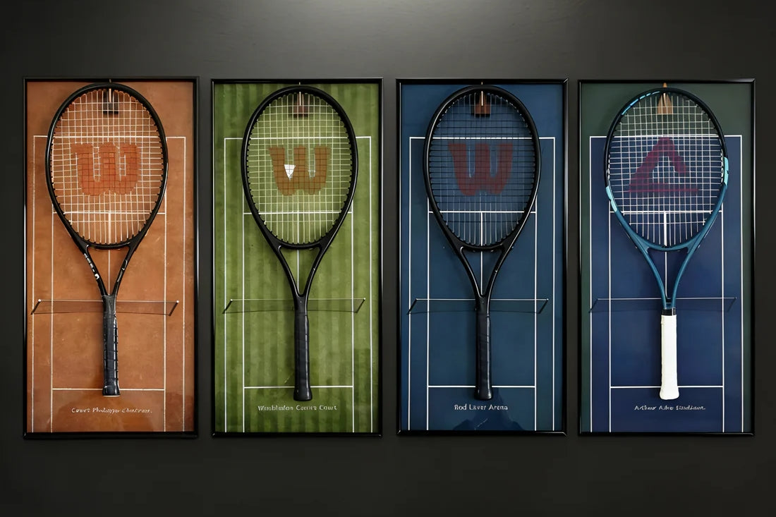 Grand Slam-Inspired Tennis Racket Display Frame – Wall-Mounted Collector Showcase